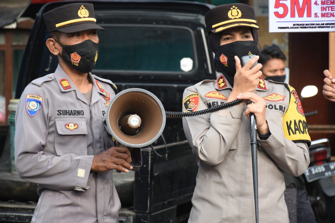 Dalam kegiatan tersebut Kapolres secara langsung menyampaikan himbauan dengan menggunakan pengeras suara, untuk disiplin dalam mematuhi protokol kesehatan.
