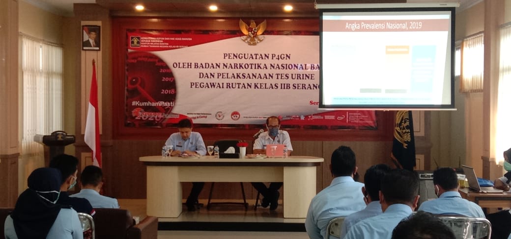 KOTA SERANG, MOI – Dalam Rangka melakukan Pencegahan Dan Pemberantasan Penyalahgunaan dan Peredaran Gelap Narkoba Dan Narkotika (P4GN), Rumah Tahanan (Rutan) Kelas II B Serang bekerjasama dengan Badan Narkotika Nasional (BNN) Provinsi Banten untuk melakukan Tes Urine bagi pegawai dan tahanan. Bertempat di Aula Rutan Kelas IIB. Selasa, (16/06/2020).