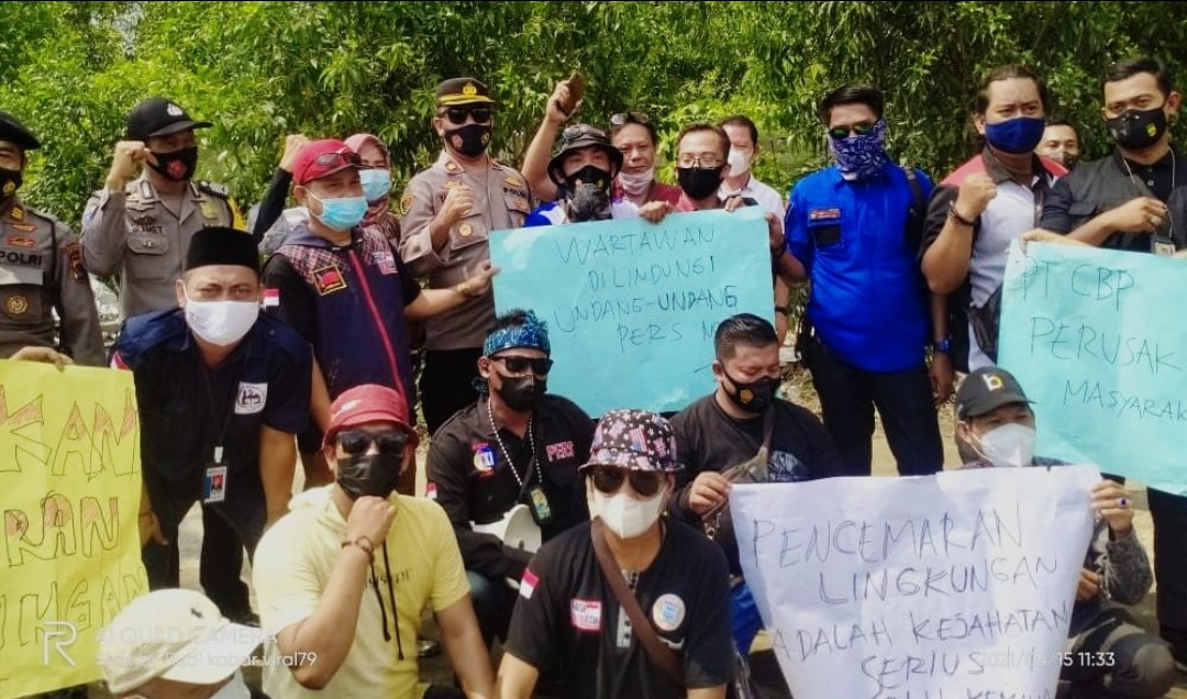 Aksi damai tersebut buntut dari dugaan pengusiran dan menghalang-halangi tugas Seorang Jurnalis saat akan mengkonfirmasi adanya pembuangan limbah B3 yang terlihat oleh awak media keluar melalui saluran drainase, yang mengalir bebas di kawasan aliran menuju pemukiman warga sekitar.