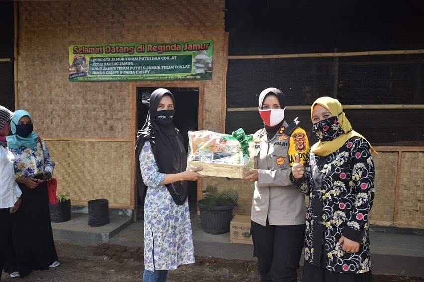 BANJAR, MOI – Kapolres Banjar AKBP Melda Yanny bersama Polwan jajaran Polres Banjar kunjungi para pengusaha UMKM yang berada di wilayah Kecamatan Langensari Kota Banjar, di antaranya UP2K Waringinsari pengrajin keripik dan makanan ringan, Industri pembuatan Wajan Kidangmas, serta Pelaku budidaya jamur tiram, Rabu (15/7/2020)