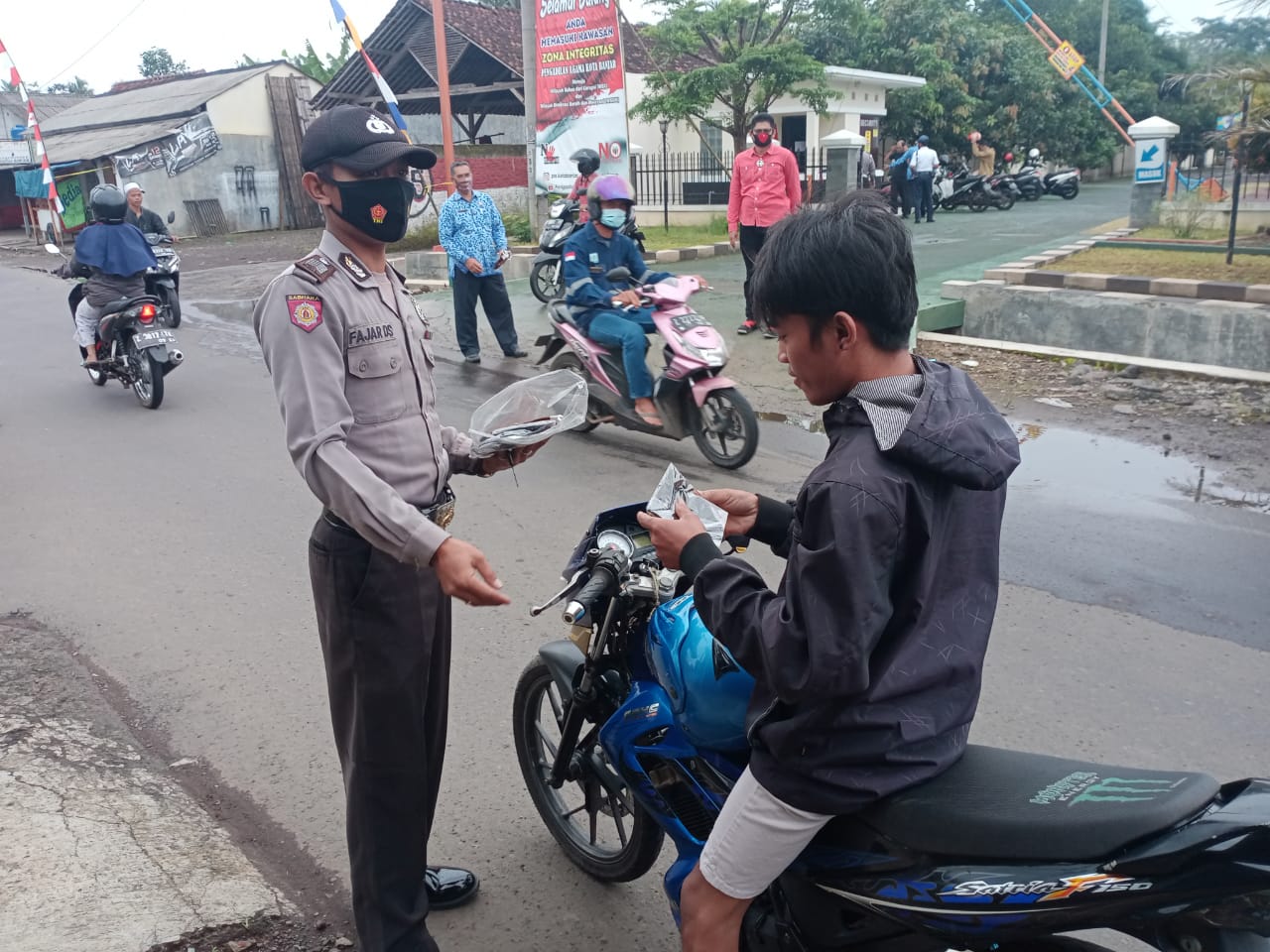 Selain itu, setelah penerapan sanksi, petugas memberikan masker kepada para pelanggar dan berjanji untuk selalu memakai masker apabila beraktifitas di luar rumah. (YR)