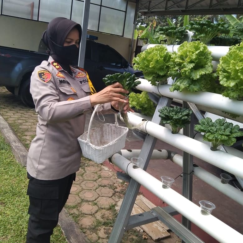 BANJAR, MOI – Berlokasi di kediaman Kapolres Banjar Polda Jabar di Ling. Randegan 1 Desa Raharja Kecamatan Purwaharja Kota Banjar, Kapolres Banjar AKBP Melda Yanny, bersama personil Polwan Polres Banjar panen sayuran yang ditanam dengan menggunakan teknik Hidroponik, Kamis (16/7/2020).