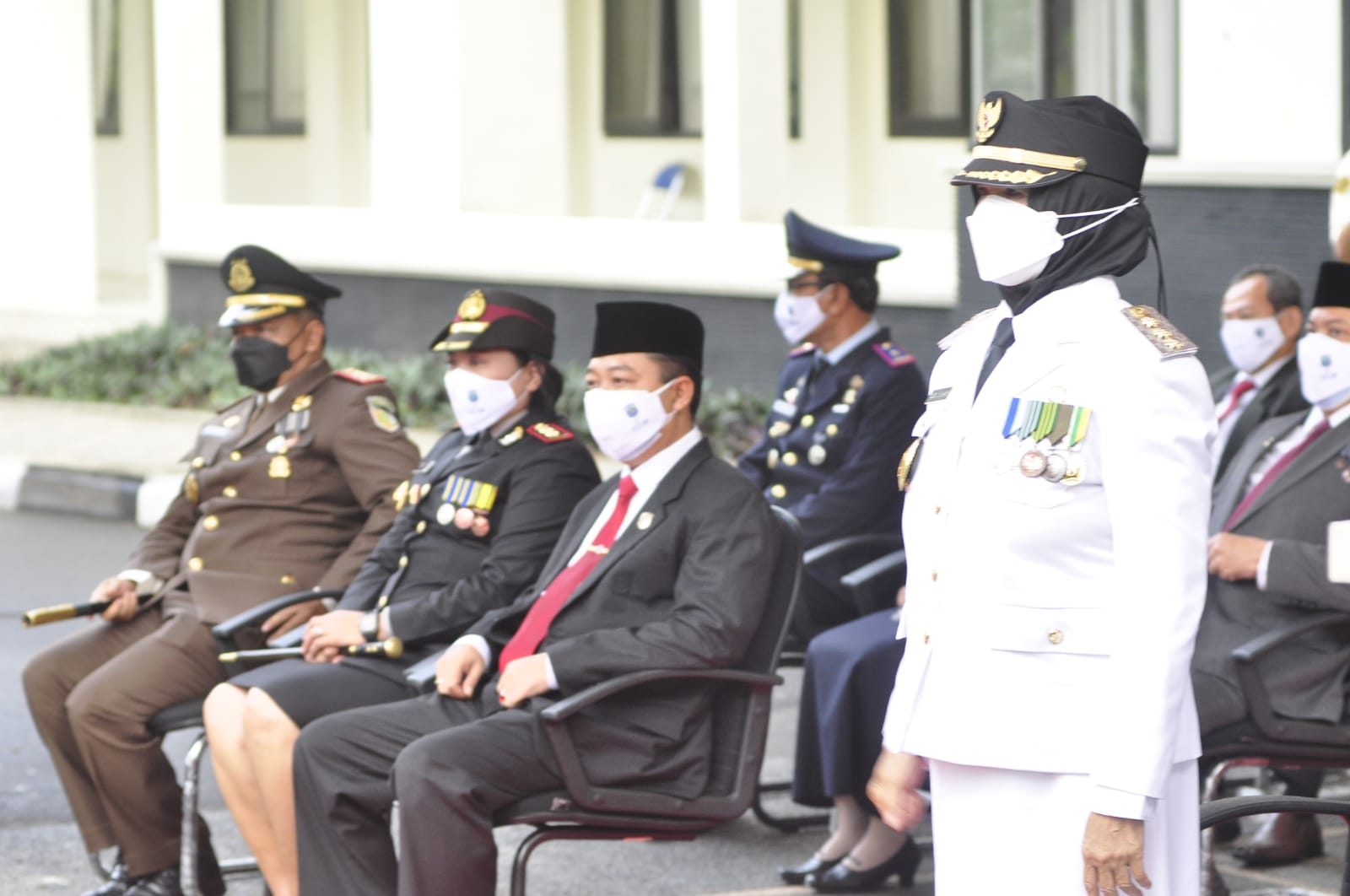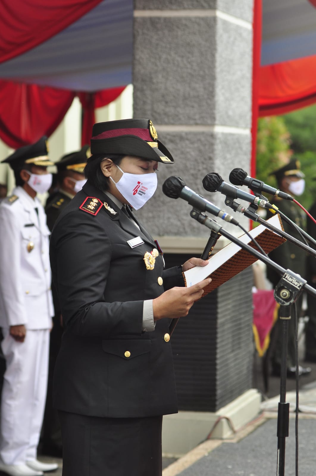 Bertindak selaku Inspektur Upacara, Wali Kota Banjar Ade Uu Sukaesih dan Kapolres Banjar AKBP Ardiyaningsih, bertindak sebagai Pembaca Undang-Undang Dasar 1945.