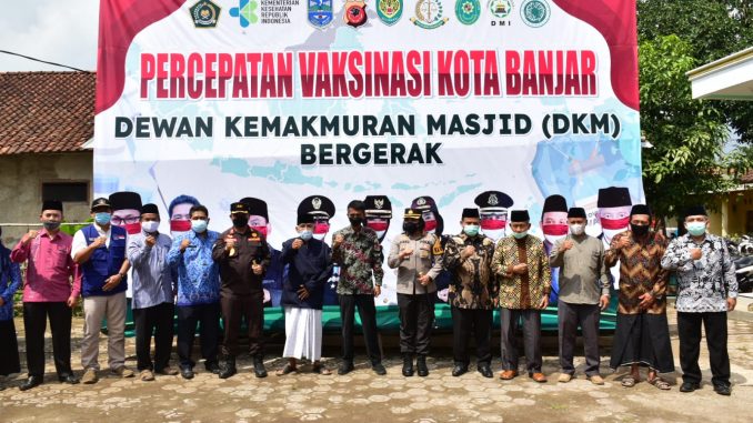 Banjar, mediaotonomiindonesia.com – Setelah Pemkot Banjar membuat Program Jemput Bola (Jebol) dalam percepatan vaksinasi dengan cara menjemput warga masyarakat secara door to door, kini Kapolres Banjar bekerja sama dengan Kemenag Kota Banjar, Dinkes Kota Banjar, Kodim 0613/Ciamis, Pemkot Banjar serta DMI dan MUI kota Banjar luncurkan Program DKM (Dewan Kemakmuran Masjid) Bergerak dalam percepatan vaksin di Kota Banjar.
