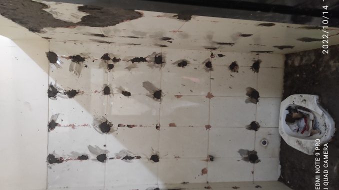 Investigasi dilapangan, rehabilitasi toilet Dinsos Kabupaten Tangerang terlihat dikerjakan pelaksana tidak ada pembongkaran dinding keramik lama. Keramik baru langsung ditempel ke dinding lama.