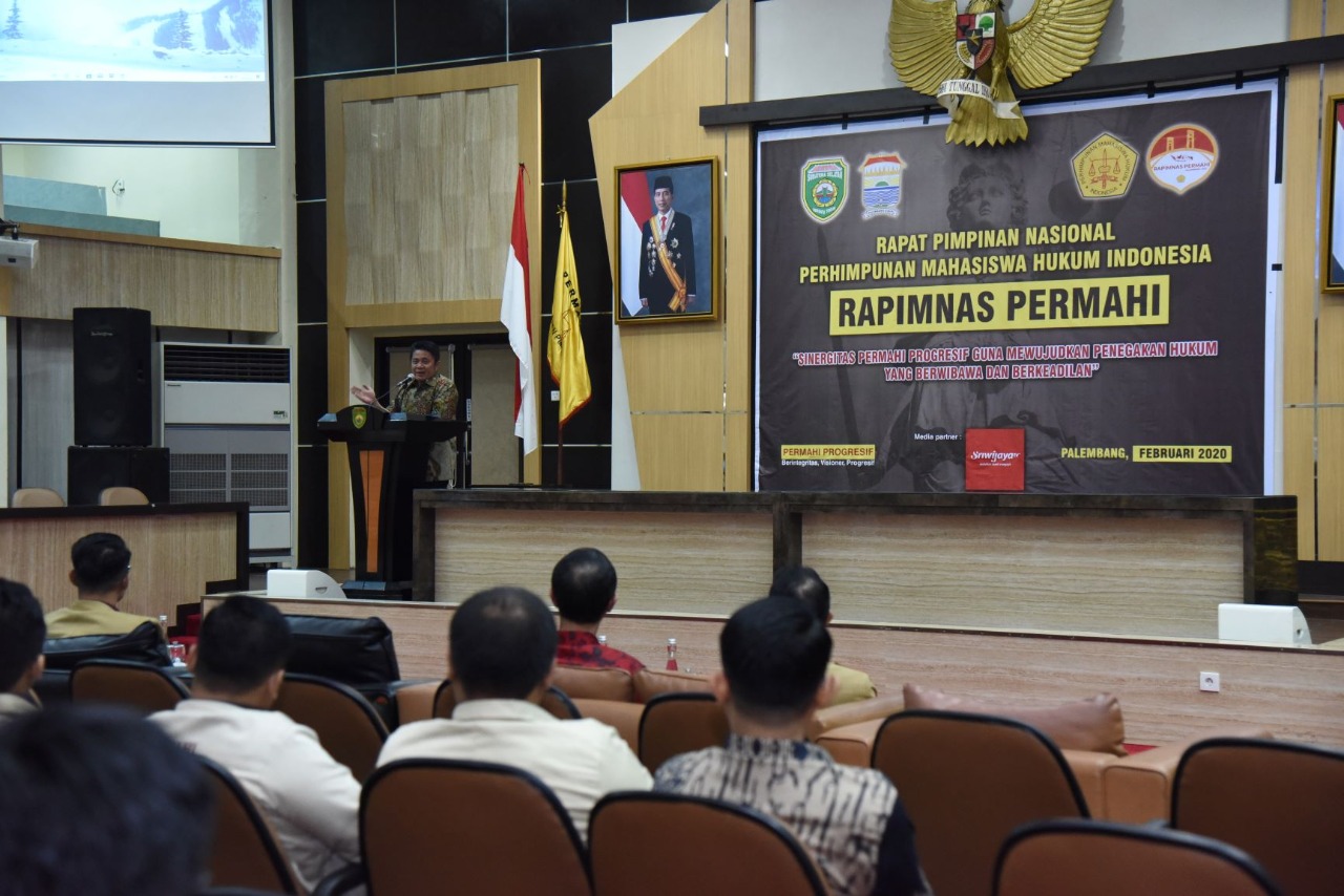PALEMBANG, MOI – Mengawali agendanya Selasa (18/2/2020) pagi, Gubernur Sumsel H. Herman Deru menghadiri Simposium dan Rapat Pimpinan Nasional Perhimpunan Mahasiswa Hukum Indonesia (Permahi) di Auditorium Bina Praja. Dalam kesempatan itu HD meminta agar mahasiswa hukum ini tidak apatis dengan isu-isu terkini dan memberikan kontribusi nyatanya bagi pembangunan bangsa Indonesia.