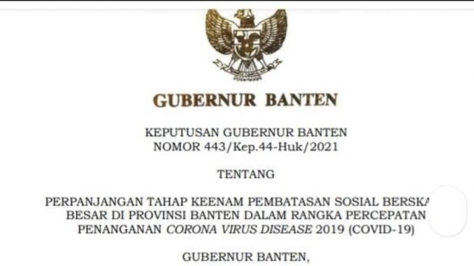 SERANG, MEDIA OTONOMI INDONESIA – Gubernur Banten, H Wahidin Halim, kembali mengeluarkan surat keputusan dengan nomor 443/Kep.44-HUK/2021 tentang perpanjangan tahap keenam PSBB di Provinsi Banten dalam rangka percepatan penanganan covid-19, Kamis (18/02/2021).