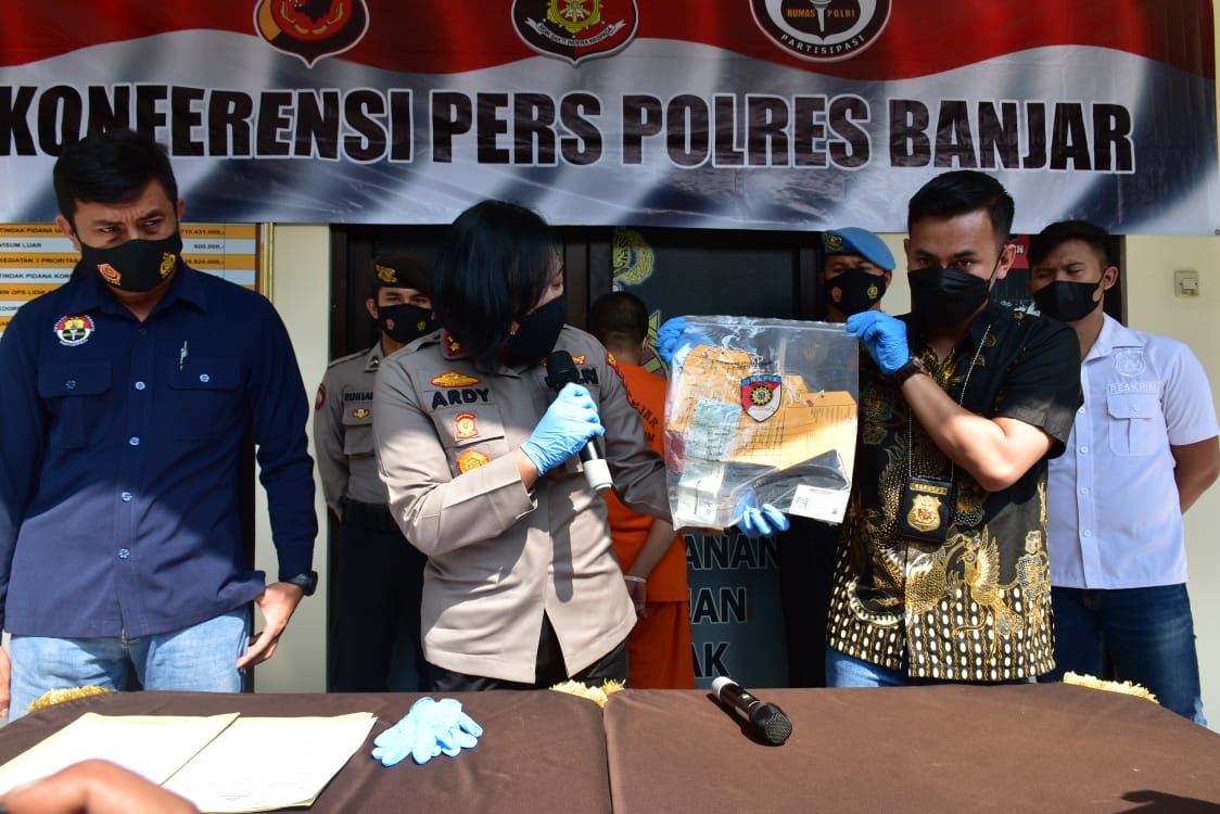 BANJAR, MEDIA OTONOMI INDONESIA – Tidak lebih dari 3×24 jam pelaku spesialis penipuan motor berhasil diringkus oleh Sat Reskrim Polres Banjar ditempat persembunyiannya, hal itu disampaikan oleh Kapolres Banjar AKBP Ardiyaningsih saat jumpa pers di Mapolres Banjar, Jum’at (18/6/2021).