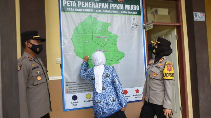 BANJAR, MEDIA OTONOMI INDONESIA – Dalam masa Pemberlakuan Pembatasan Kegiatan Masyarakat (PPKM) Skala Mikro di kota Banjar, yang mana mengedepankan satgas tingkat RT, RW dan Desa, Walikota Banjar Ade Uu Sukaesih bersama Kapolres Banjar AKBP Melda Yanny, mengecek satgas penanganan Covid-19 tingkat Desa Karyamukti.