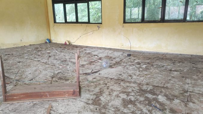 Dari tujuh ruang kelas, tiga ruang kelas tidak pernah dipakai oleh pihak sekolah. Akibat ruang bangunan kelas retak, lantainya turun dan keramik pecah. Plafon retak, bubungan atap sudah miring.