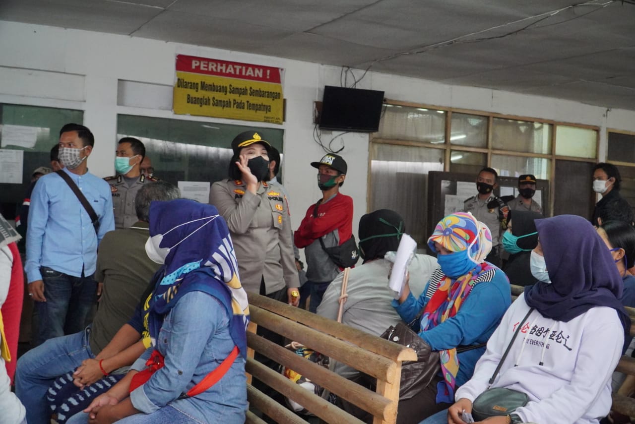 BANJAR, MEDIA OTONOMI INDONESIA – Bertempat di PT. Alba Priangan Lestari (APL) selain pimpin pelaksanaan pengamanan pembagian kompensasi karyawan PT. APL, Kapolres Banjar AKBP Ardiyaningsih woro-woro sampaikan himbauan dan edukasi protokol kesehatan dalam rangka Edukasi Prokes dan Vaksinasi kepada Karyawan PT. Alba Priangan Lestari, Sabtu (19/6/2021).