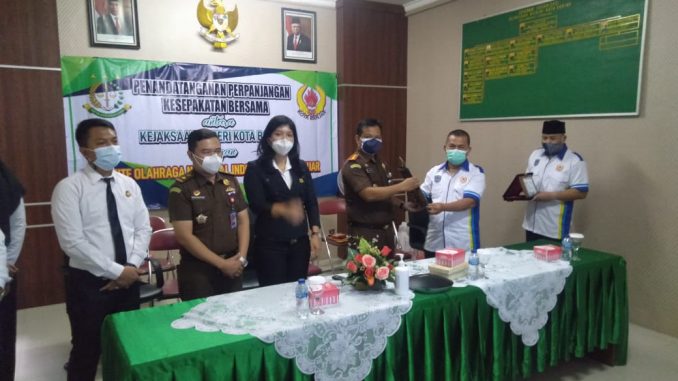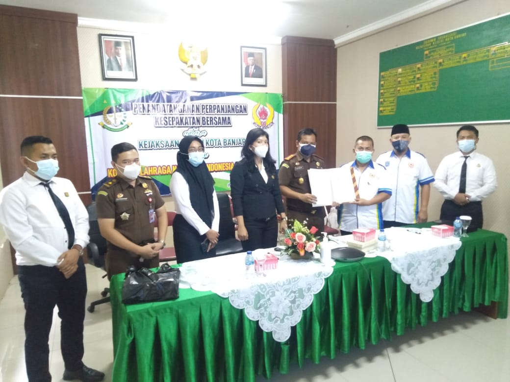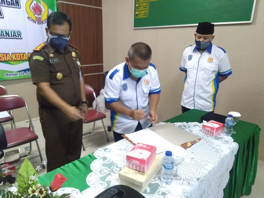 BANJAR, MEDIA OTONOMI INDONESIA – Kejaksaan Negeri Kota Banjar melaksanakan Penandatanganan Kesepakatan Bersama dengan Komite Olahraga Nasional Indonesia (KONI) Kota Banjar, yang dilaksanakan di Kantor Kejaksaan Negeri Kota Banjar, Senin (19/7/2021).
