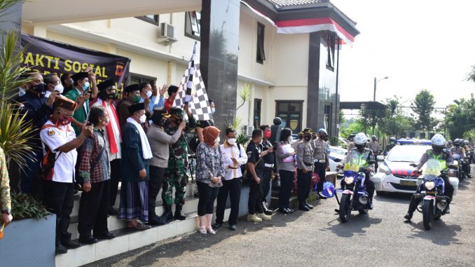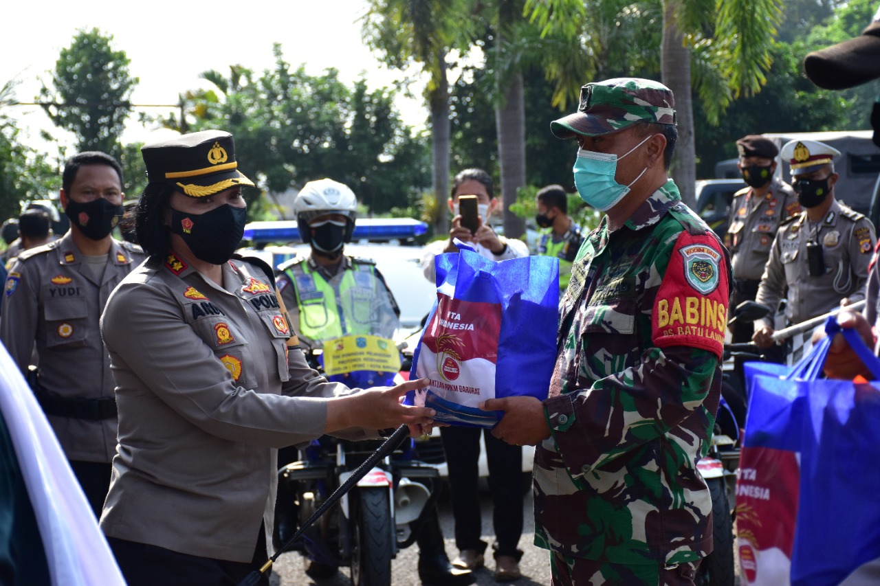BANJAR, MEDIA OTONOMI INDONESIA – Berlokasi di halaman lobby Polres Banjar, Kapolres Banjar AKBP Ardiyaningsih, salurkan bantuan kepada warga masyarakat yang terdampak Covid-19 dalam rangka PPKM Darurat bersama para Tokoh Agama, Tokoh Masyarakat, dan Tokoh Pemuda, Senin (19/7/2021).