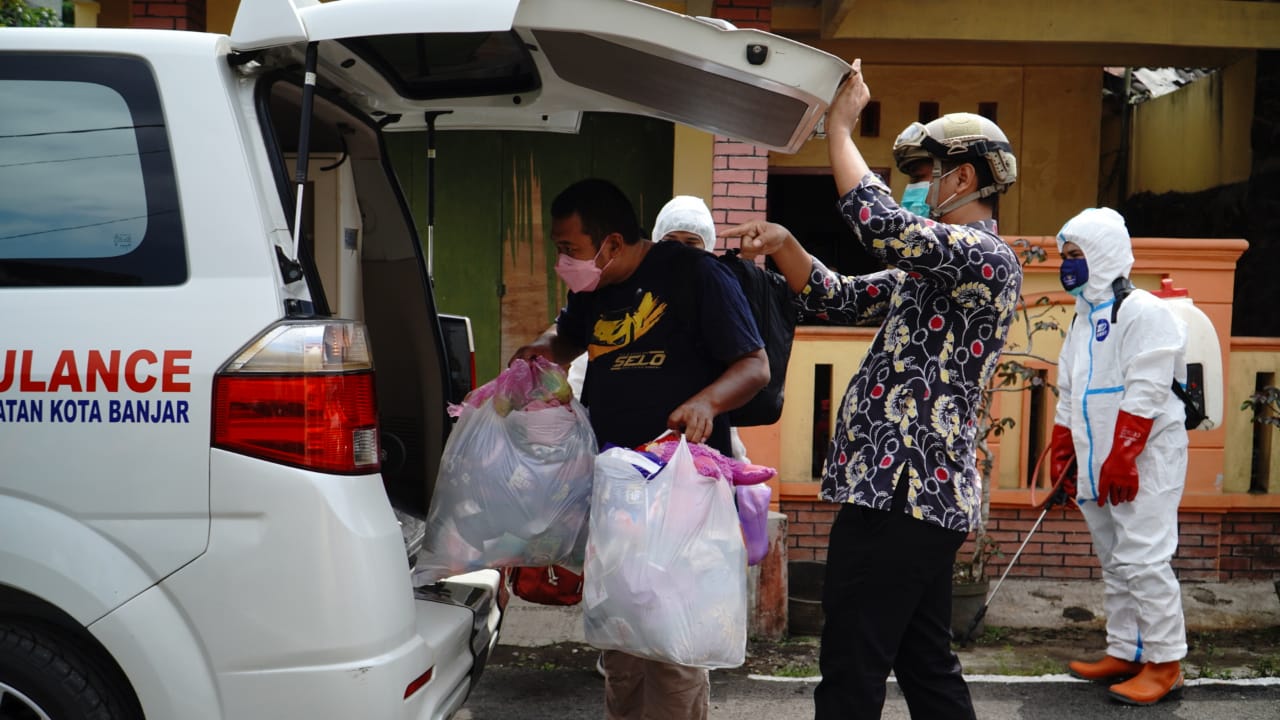 Kegiatan penjemputan warga Kota Banjar yang terkonfirmasi positif Covid-19 tersebut dipimpin langsung oleh Walikota Banjar Ade Uu Sukaesih bersama Kapolres Banjar AKBP Ardiyaningsih, untuk melaksanakan isoter di GBP tersebut.