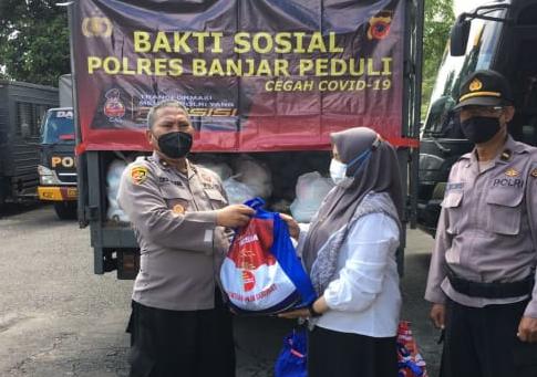 Kapolres Banjar Salurkan Bansos Kepada Penyandang Disabilitas Dan Masyarakat Yang Terdampak Covid-19