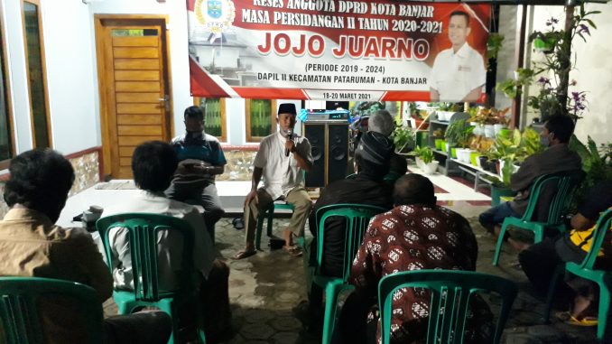 BANJAR, MEDIA OTONOMI INDONESIA – Jojo Juarno Anggota Dewan Perwakilan Rakyat Daerah (DPRD) Kota Banjar dari Fraksi Gerindra, melaksanakan reses di Sukamanah Rt 13/16 Kelurahan Pataruman, Sabtu (20/3/2021).