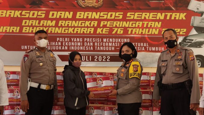 Banjar, mediaotonomiindonesia.com – Berlokasi di Aula Presisi Polres Banjar, Kapolres Banjar AKBP Ardiyaningsih didampingi Kasat Lantas, Kasat Samapta, serta Personel Polres Banjar mengikuti kegiatan Bantuan Sosial (Bansos) dan Bakti Sosial (Baksos) Religi yang dilaksanakan secara serentak seluruh Indonesia dipimpin langsung oleh Kapolri Jenderal Polisi Drs. Listyo Sigit Prabowo, M.Si secara virtual, Senin (20/6/2022).