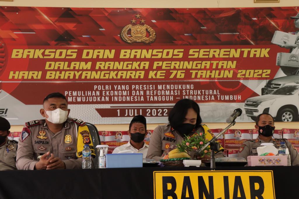Pada kegiatan tersebut Polres Banjar menyalurkan bansos kepada warga masyarakat dan tokoh agama Kota Banjar, secara simbolis diberikan langsung oleh Kapolres Banjar.