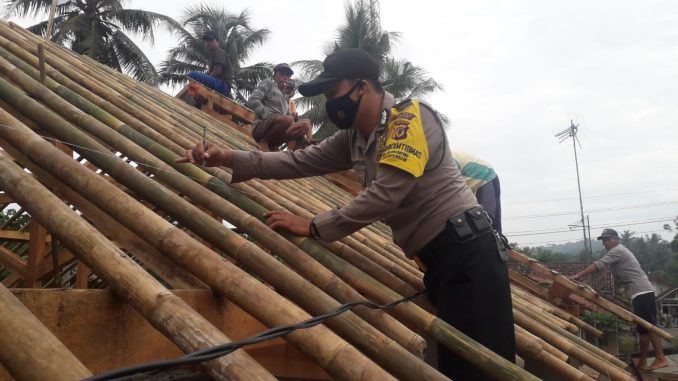 Hal tersebut terbuka pada kegiatan sehari-harinya, Bripka Dedi sedang membantu mengangkat genteng rumah salah satu warganya yang sedang merenovasi rumah, Jum’at (20/8/2021).