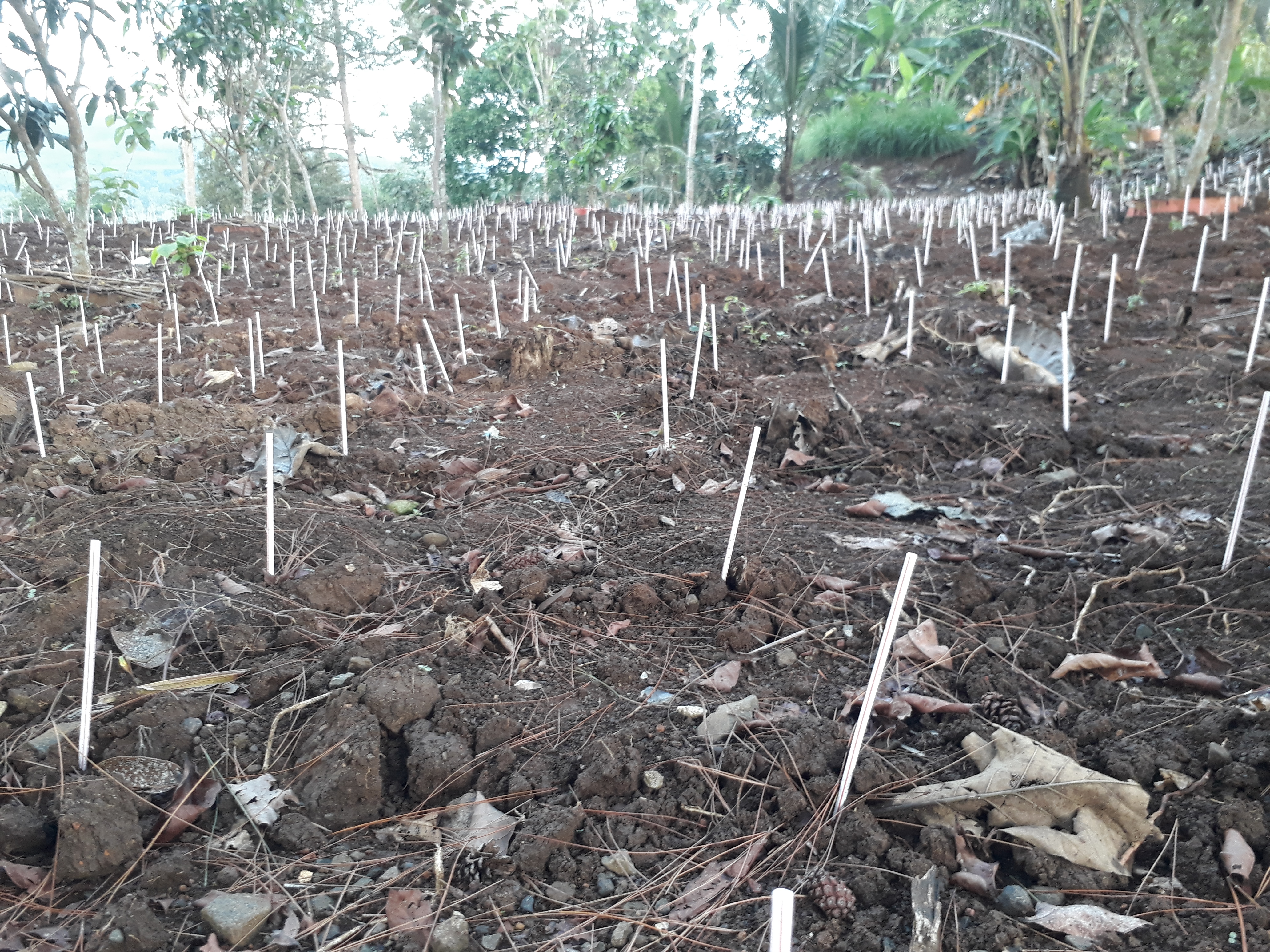 Bendahara Aspeporin Kota Banjar Drs. H. Edi Supradigama M.M dikebun miliknya yang terletak di Desa Sukamukti, Kecamatan Pataruman awal september telah melakukan penanaman sekitar 3800 bibit porang.