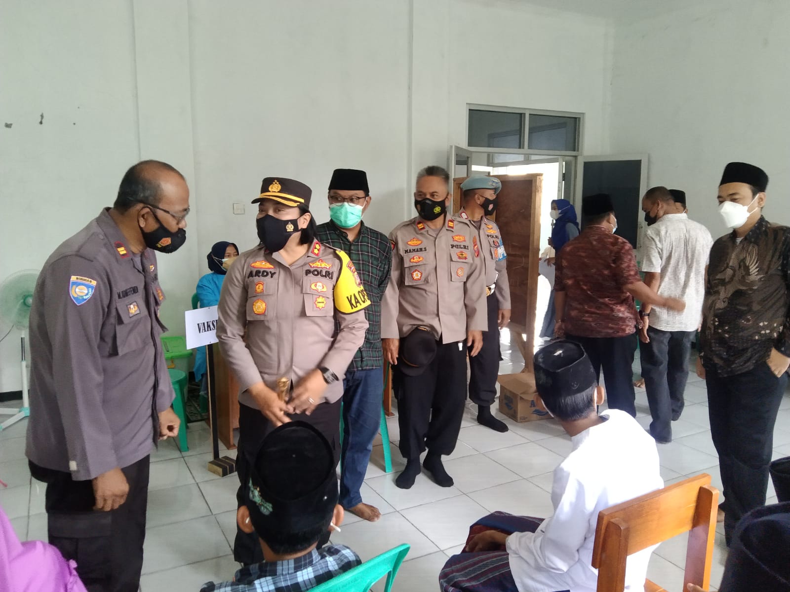 Kegiatan yang dilaksanakan mulai jam 09.00 sampai dengan 13.00 WIB tersebut, sempat ditinjau langsung oleh Kapolres Banjar AKBP Ardiyaningsih, dengan disambut langsung oleh Ketua PCNU Kota Banjar beserta Kapolsek Pataruman, Kasat Intelkam, Kasat Binmas, Kasi Dokkes serta Personel Polres Banjar dan Mahasiswa STIKES Bina Putra kota Banjar yang tergabung dalam Tim vaksinator Polres Banjar.