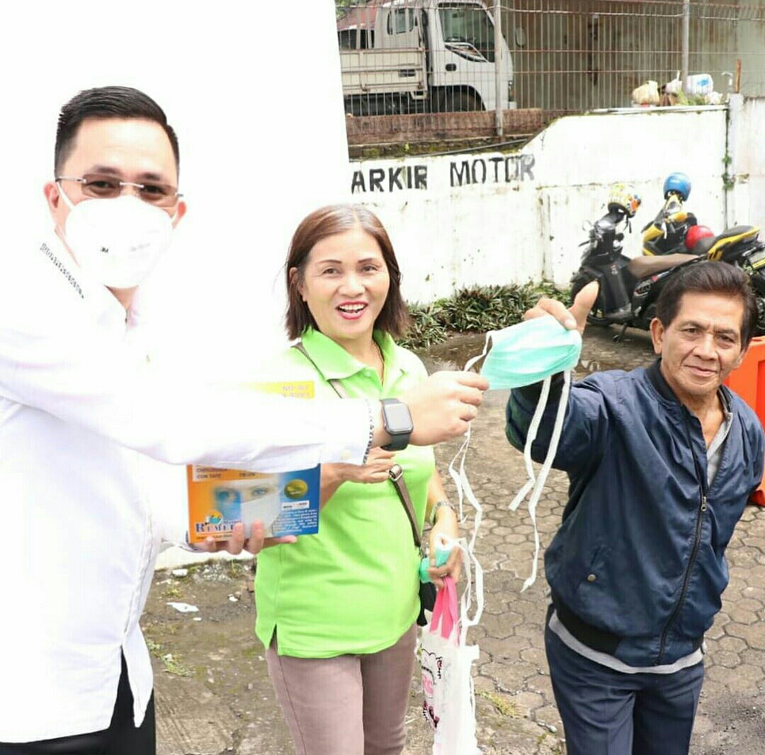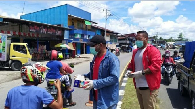 Pengurus DPD Partai Solidaritas Indonesia (PSI) Kabupaten Mimika, Papua dan Anggota DPRD Kabupaten Mimika dari PSI, Bro Reddy Wijaya, Membagi-Bagikan Masker dan Hand Sanitizer gratis kepada Warga Masyarakat Mimika, Sabtu 21 Maret 2020.