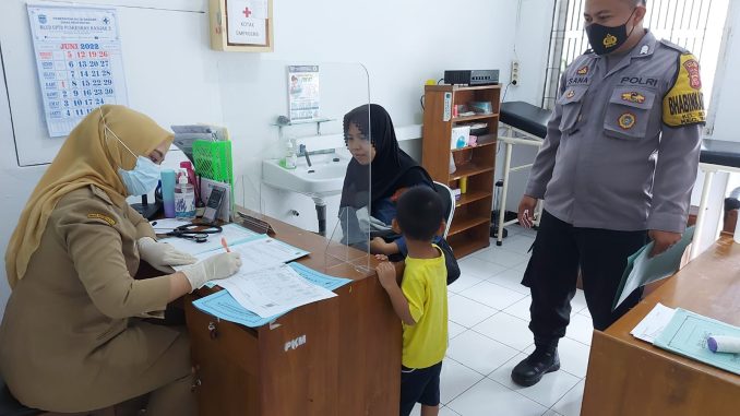 Dalam kegiatan tersebut, salah satunya mendampingi anak calon peserta sunatan massal dalam rangka HUT Bhayangkara ke-76, untuk dilakukan screening di PKM Banjar 2 Kelurahan Situbatu Banjar.