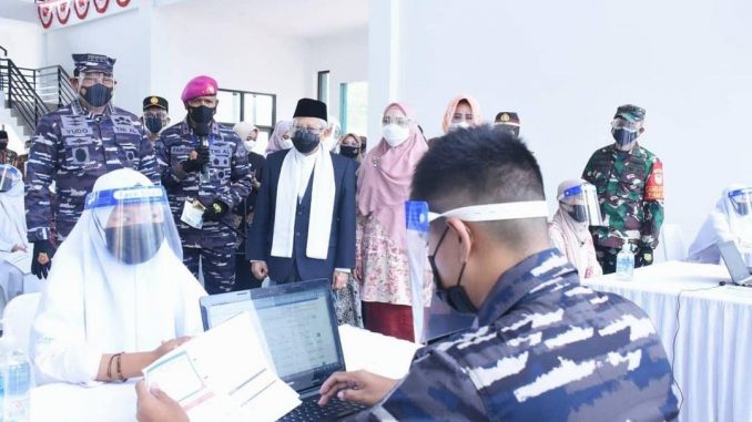 “Kegiatan Vaksinasi ini diselenggarakan oleh TNI AL. Kami disini TNI AD turut membantu pelaksanaan Vaksinasi dan Pengamanan Wapres,” Ucapnya Danrem 064/MY. (Sahat RM/Red)