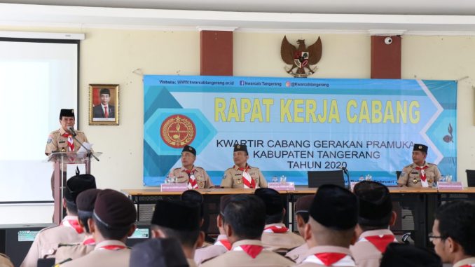 CURUG, MOI – Sekretaris Daerah Kabupaten Tangerang Mcoh Maesyal Rasyied membuka Rapat Kerja Cabang (Rakercab) program kerja tahun 2020 Kwartir Cabang Pramuka Kabupaten Tangerang yang di selenggaraakan di ruang rapat Gedung Pramuka kec Curug Kabupaten Tangerang, Sabtu (22/02/2020)