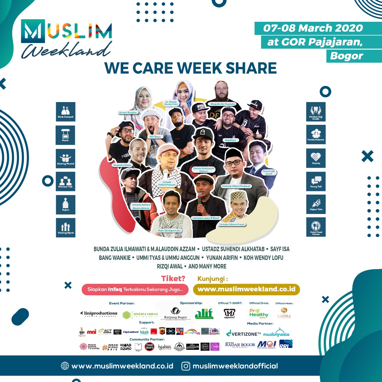BOGOR, MOI – DPC Media Online Indonesia (MOI) Bogor Raya akan menggelar event perdana bertajuk “Muslim Weekland” dengan tema We Care Week Share”. Acara yang mengambil tempat di GOR Pajajaran Bogor selama 2 hari berturut-turut (7-8 Maret 2020) merupakan hasil kerja bareng LINI Production dan Yayasan Sinergi Hijrah Indonesia.