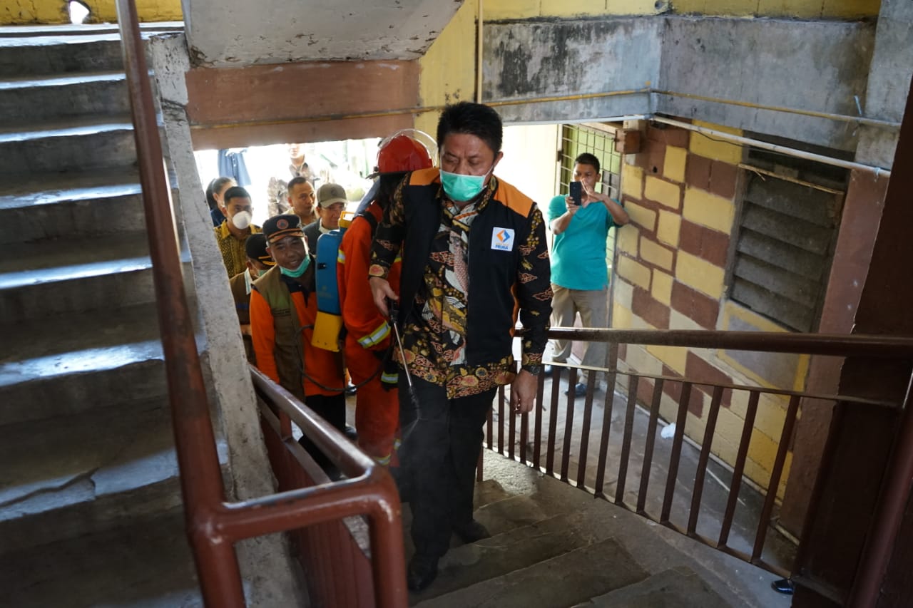 “Kesehatan mereka harus kita bantu agar terhindar dari wabah Covid-19 ini. Langkah ini juga untuk memotivasi masyarakat agar bersama-sama melakukan pencegahan. 55 blok di rusun ini akan dilakukan penyemprotan secara berkesimabungan yang tentunya harus dibantu oleh masyarakat” terangnya.