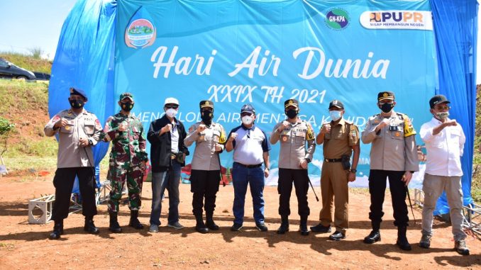 LEUWI KERIS , MEDIA OTONOMI INDONESIA – Wali Kota Banjar Ade Uu Sukaesih bersama Kapolres Banjar AKBP Melda Yanny serta Forkopimda Kabupaten Ciamis, dan Tasikmalaya menghadiri kegiatan Penananaman Pohon Dalam Rangka Peringatan Hari Air Dunia ke-29 Tahun 2021, yang di selenggarakan oleh Balai Besar Wilayah Sungai Citanduy berlokasi di Gardu Pandang Bendungan Leuwikeris, Senin (22/3/2021).