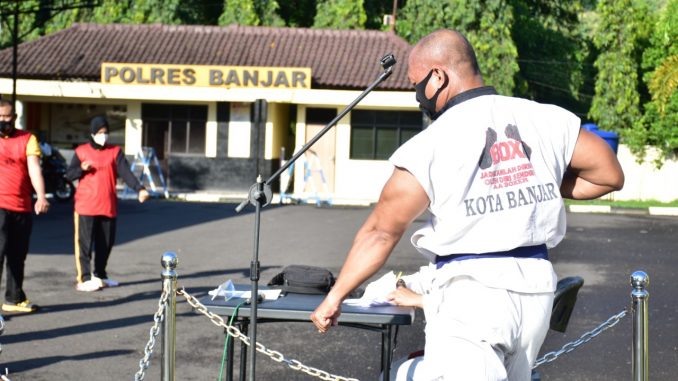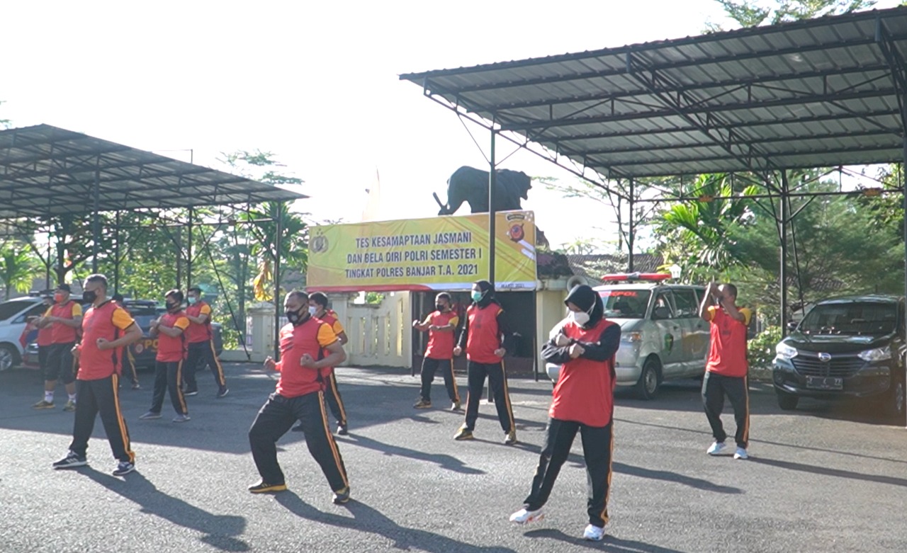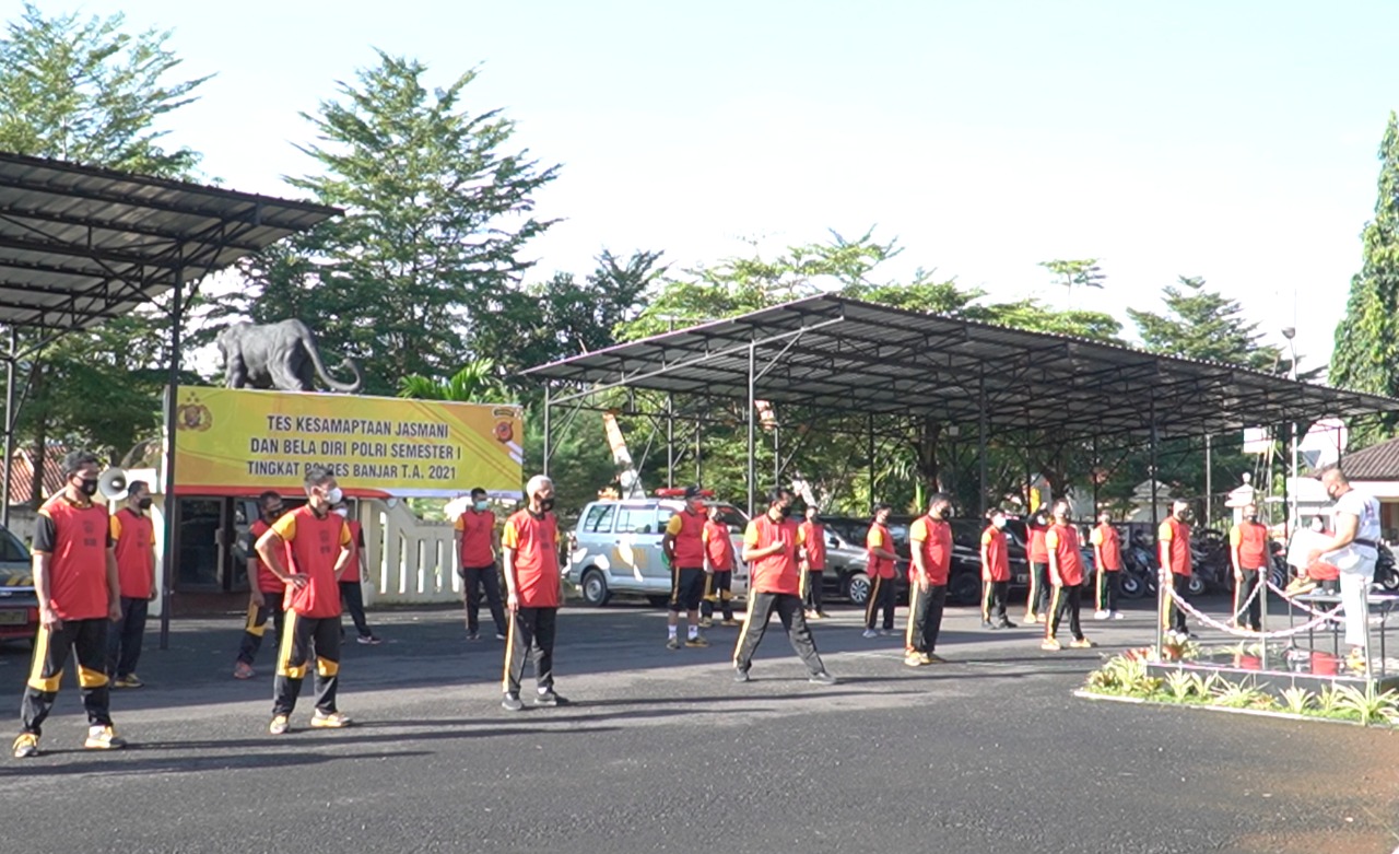 BANJAR, MEDIA OTONOMI INDONESIA – Berlokasi di Mapolres Banjar, Polres Banjar menggelar pelaksanaan Kesamaptaan Jasmani (Samjas) yang dilakukan secara rutin, Selasa (23/3/2021).