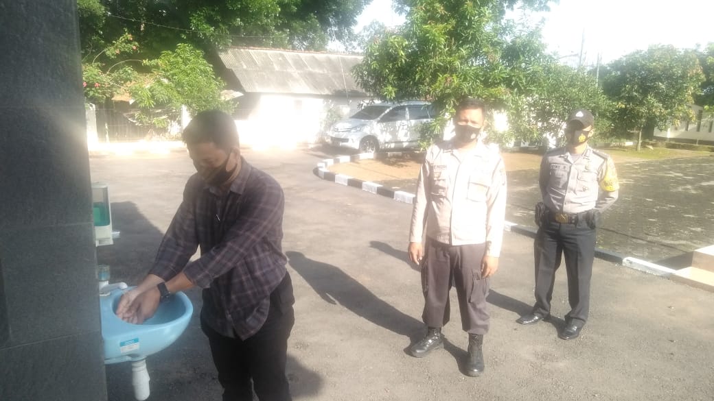Setidaknya 32 anggota Polsek Pataruman Polres Banjar sebelum memasuki kantor, setiap anggota dicek terlebih dahulu di pintu masuk oleh Provos Polsek Pataruman, Rabu (23/12/2020).