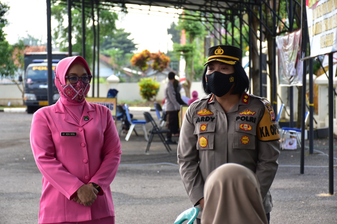 Kapolres Banjar AKBP Ardiyaningsih bersama Pj. Ketua Bhayangkari Banjar Ny. Reni Wira turut memantau pelaksanaan vaksinasi tersebut.