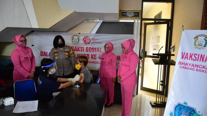 Di sela-sela kegiatan Kapolres mengatakan, pihaknya bekerja sama dengan PKU Muhammadiyah Kota Banjar serta Bhayangkari Cabang Banjar melaksanakan vaksinasi dengan sasaran Anggota Bhayangkari, Keluarga anggota Polri, dan tentunya warga masyarakat.