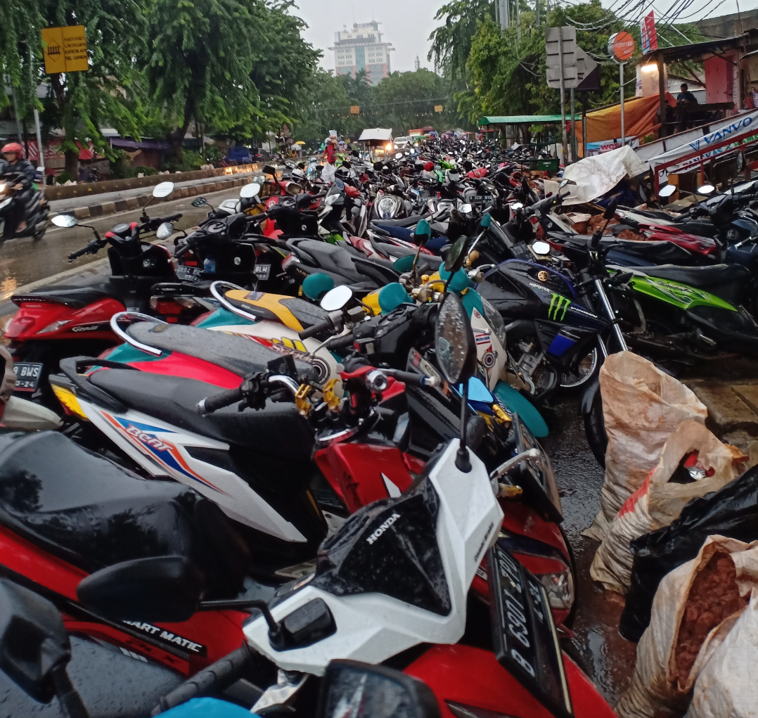 Dari pantauan Media Otonomi Indonesia, daerah Pesing Garden Jalan Panjang Jakarta Barat sudah ratusan atau mungkin ribuan motor dan beberapa mobil sudah parkir persis dibahu jalan, hanya menyisahkan jalur busway.
