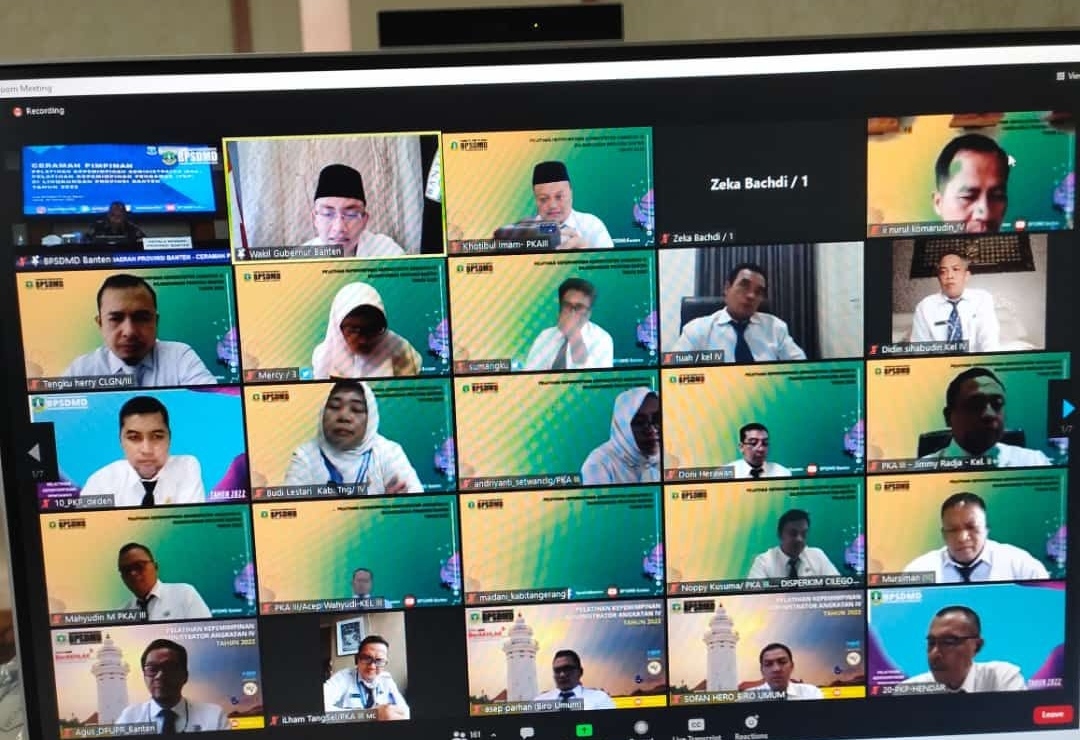 Serang, mediaotonomiindonesia.com –  Badan Pengembangan Sumber Daya Manusia Provinsi (BPSDM) Banten menggelar Pelatihan Kepemimpinan Pengawas (PKP) dan Pelatihan Kepemimpinan Administrator (PKA) kepada sebanyak 160 pejabat eselon III dan eselon IV Pemprov Banten dan Pemkab/Pemkot se-Banten secara hybrid di gedung BPSDM Provinsi Banten, Pandeglang, Kamis (24/2/2022). Wakil Gubernur Banten Andika Hazrumy dalam ceramah yang disampaikan secara virtual dari kantornya di Kawasan Pusat Pemerintahan Provinsi Banten (KP3B), Kota Serang, mengingatkan para pejabat tersebut bahwa fungsi ASN sejatinya adalah pelayan publik.