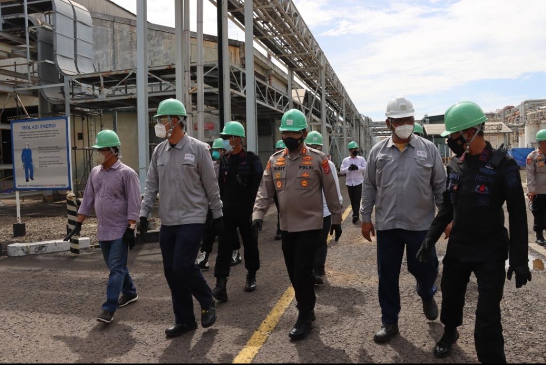 Dalam pengecekann lokasi, Kapolres Cilegon AKBP Sigit Haryono didampingi Komandan Gegana Brimob Polda Banten AKBP Ndaru Istimawan serta Manajemen Perusahaan PT MCCI Cilegon.