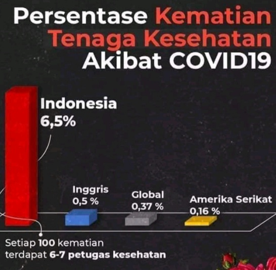 Di Indonesia tercatat ada 6-7 kematian tenaga kesehatan untuk setiap kasus kematian akibat Covid-19.