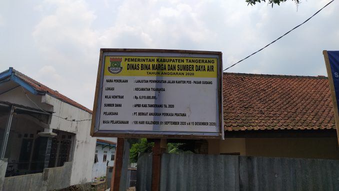 Menurutnya total anggaran yang digunakan untuk pembangunan ruas jalan tersebut menelan dana sekitar 7 Miliar dengan dana Dari APBD Kabupaten Tangerang dan ditargetkan akan selesai pada 15 Desember 2020.