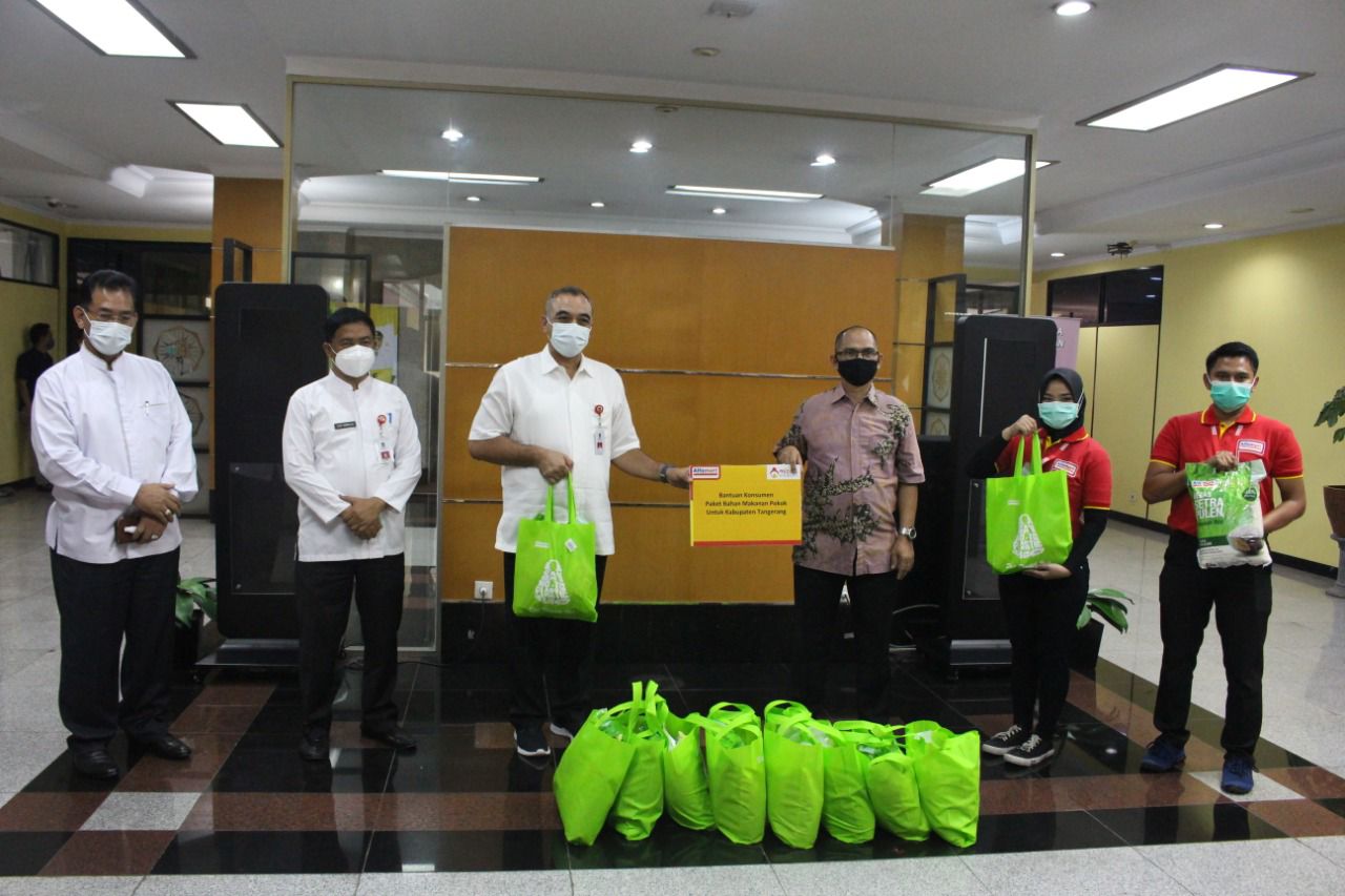 TIGARAKSA, MEDIA OTONOMI INDONESIA – Pemerintah Kabupaten Tangerang menerima bantuan sembako, Alat Pelindung Diri (APD) dan Alat Rapid Test dari Sinar Mas Land, Summarecon Mall Serpong dan PT. Sumber Alfaria Trijaya, Jumat (25/09/20)