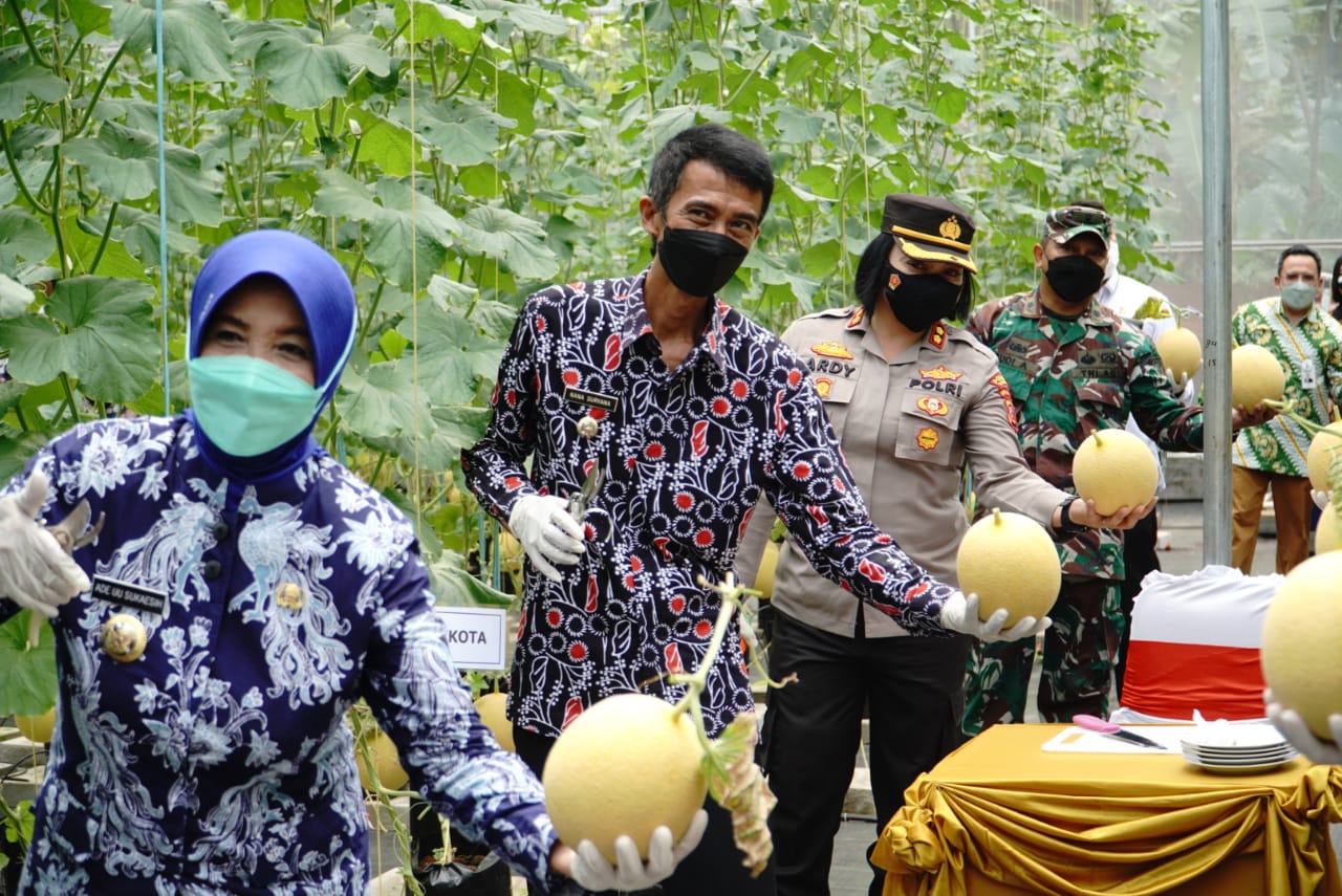 Walikota Banjar Bersama Kapolres Dan Forkopimda Kota Banjar, Meninjau Pesantren Bustanul Ulum Dalam Panen Perdana Melon Inthanon