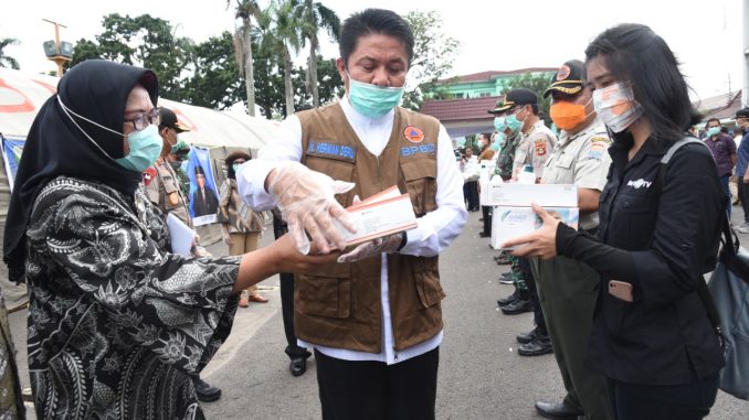 Untuk pertama diatribusi ini diserahkan secara simbolis sebanyak lima paket dari Kementerian Kesehatan (Kemenkes) RI yang kepada Provinsi Sumsel melalui Gubernur Sumsel H.Herman Deru Jumat (27/3/2020) siang.