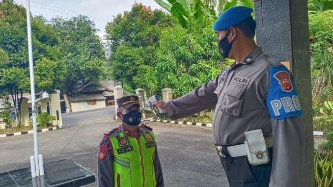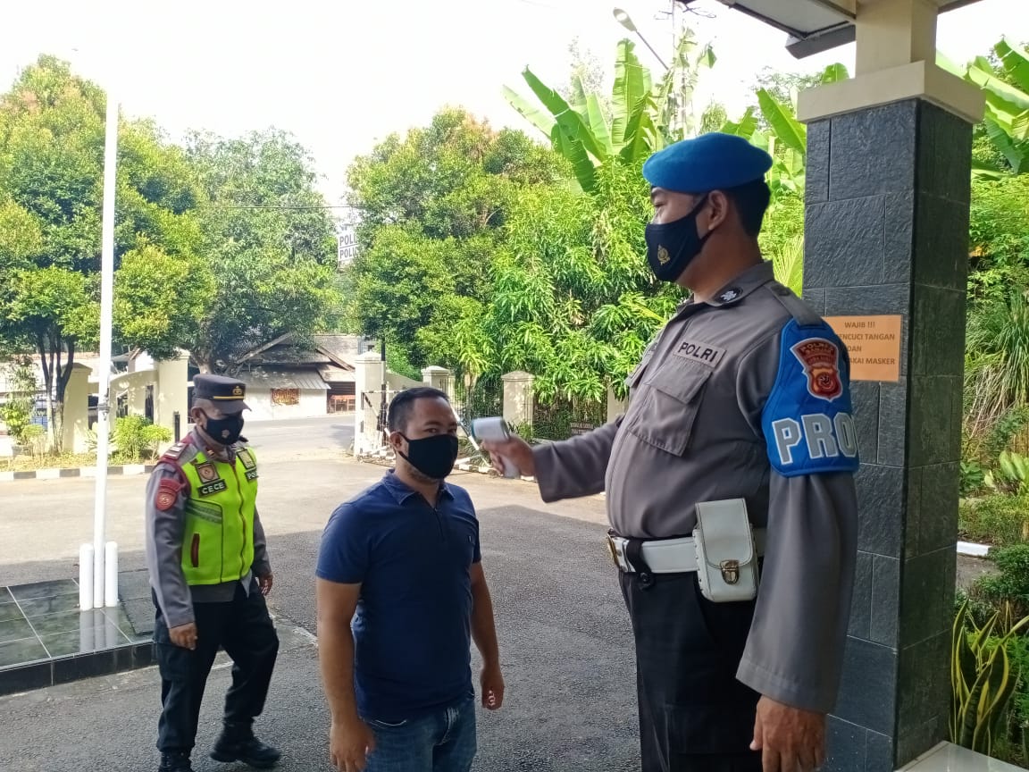 Kegiatan pengecekan suhu tubuh dan membawa handsanitizer ini mengikuti protokol kesehatan merupakan kebijakan pemerintah dari Kapolres Banjar AKBP Melda Yanny untuk internal Polri, dan hari ini Kapolsek Purwaharja AKP Taupik Maulidina memimpin kegiatan tersebut.