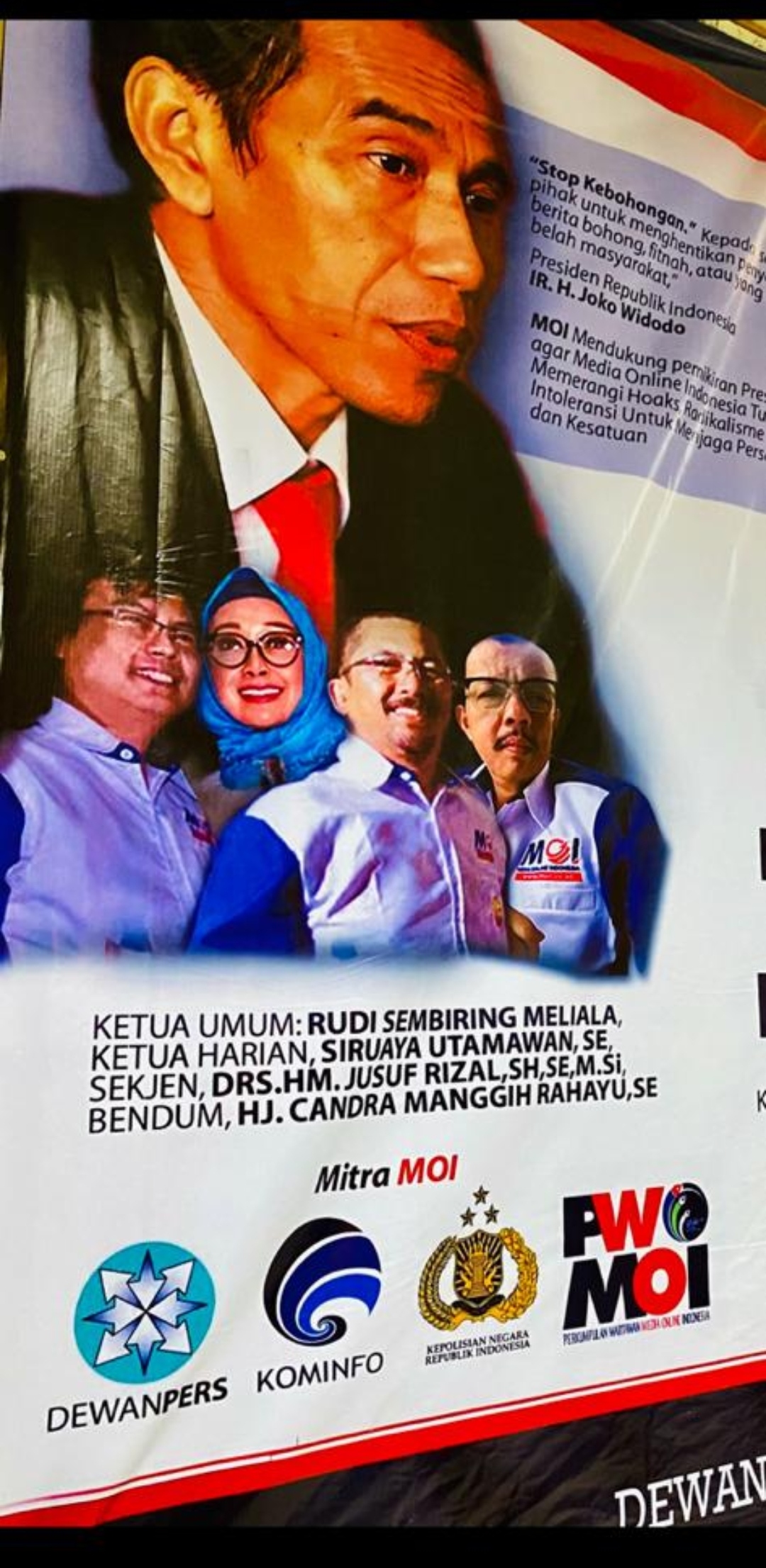 Berdasarkan catatan redaksi, perkumpulan perusahaan Media Online Indonesia (MOI) dengan jargon Profesional, Kritis dan Konstruktif itu Ketumnya Rudi Sembiring Meliala, Ketua Harian, Siruaya Utamawan, Sekjen HM. Jusuf Rizal dan Bendum Hj. Chandra Manggih. MOI, The King Of Indonesian Online Media. (Sahat RM)