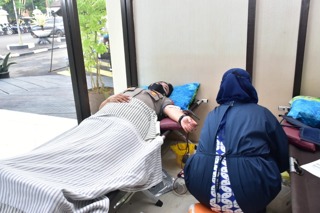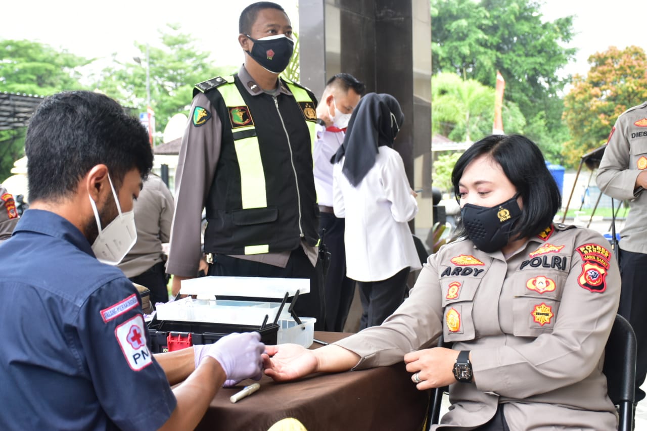 Kapolres Banjar AKBP Ardiyaningsih menyempatkan untuk mendonorkan darahnya.