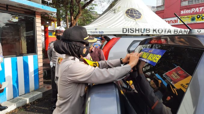 Stiker yang bertuliskan ‘Ayo Pakai Masker’ tersebut oleh Kapolres Banjjar dipasang pada bagian kaca belakang kendaraan dinasnya dan kendaraan umum berupa angkot.