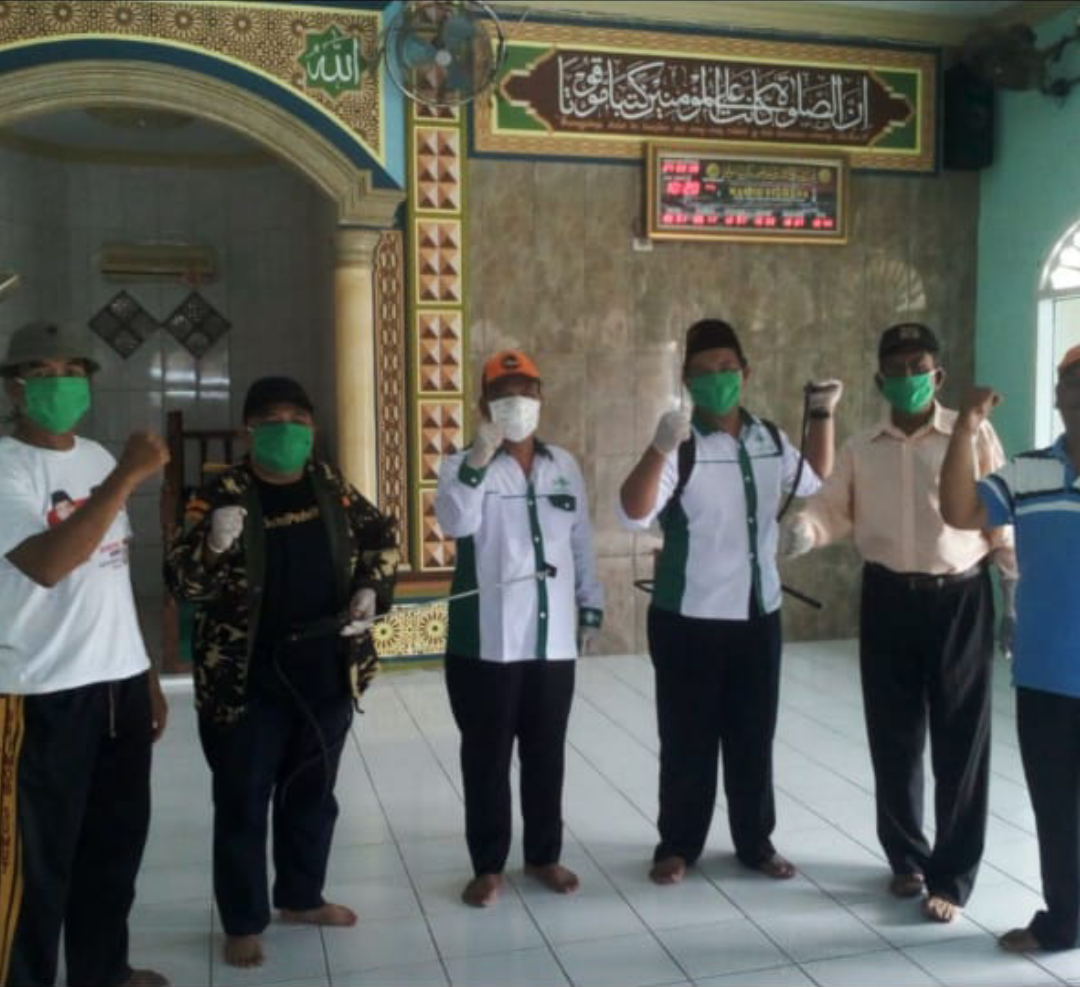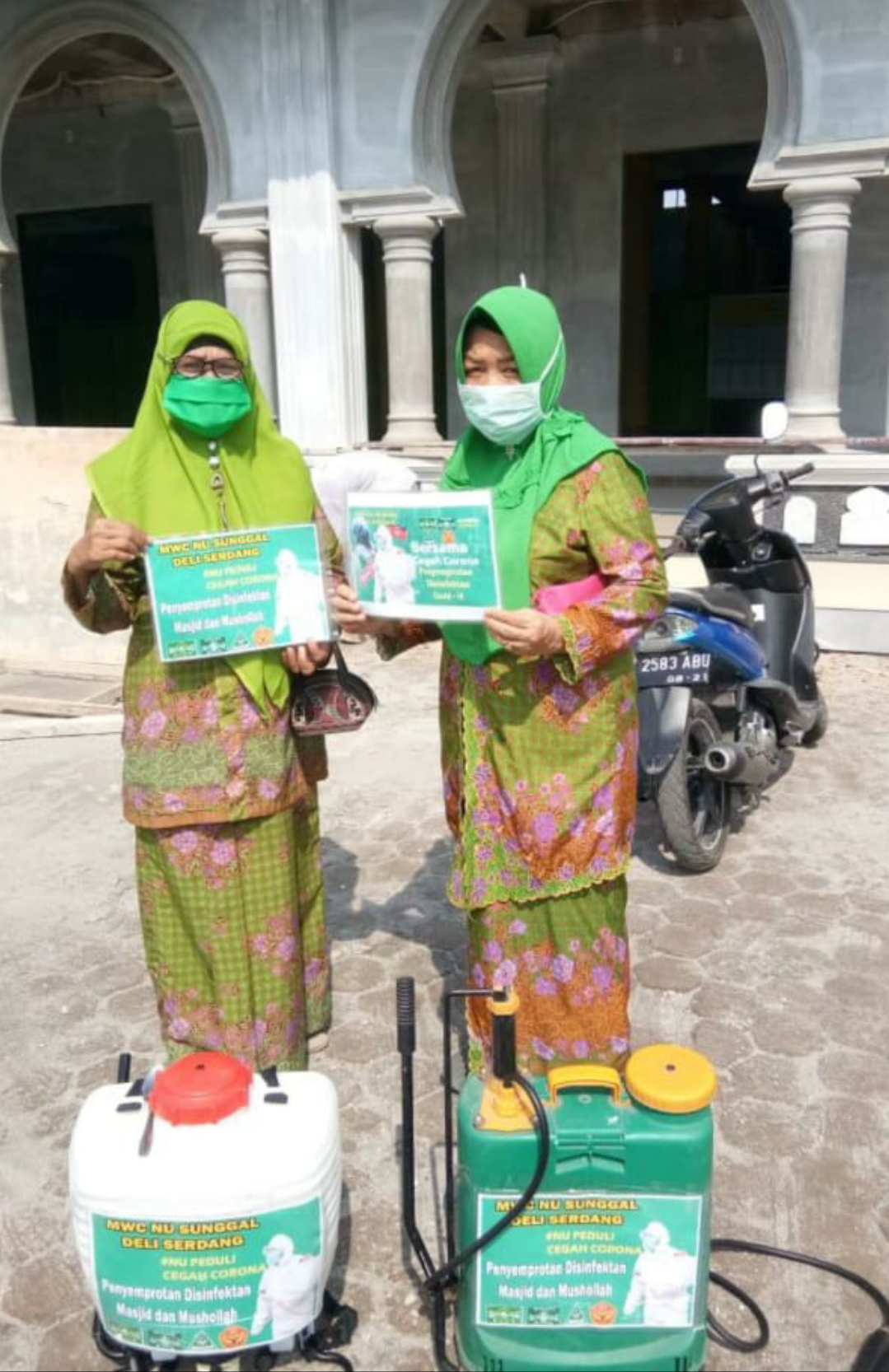 MEDAN, MOI – MWC NU Kec. Sunggal Kab. Deli Serdang Sumut bersama Banomnya PAC Muslimat Sunggal dan PAC GP Ansor Sunggal melaksanakan kegiatan penyemprotan cairan Disinfectant di seluruh masjid dan mushollah seKecamatan Sunggal Kab. Deli Serdang, Sabtu(28/03/2020).
