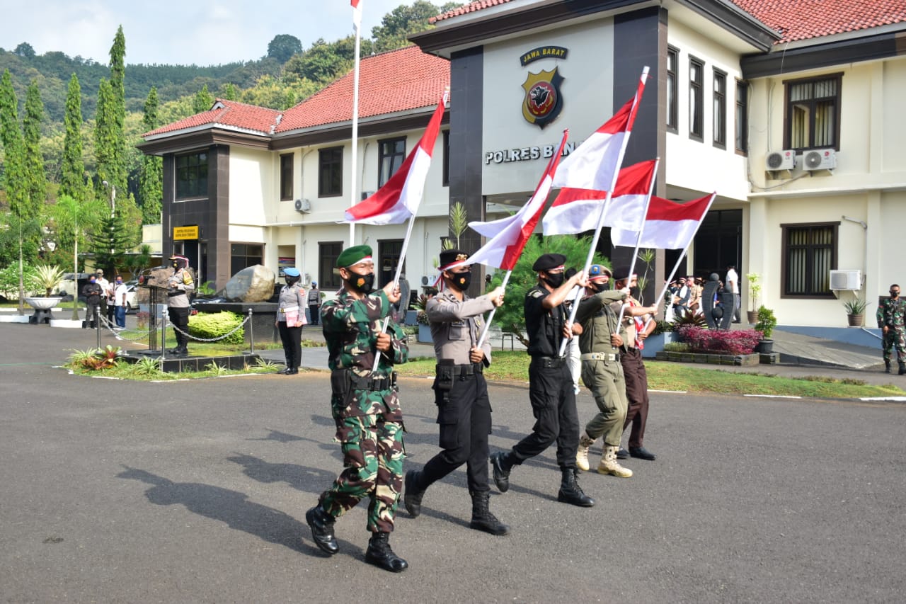 BANJAR, MEDIA OTONOMI INDONESIA – Kepala Kepolisian Resor Banjar AKBP Melda Yanny pimpin Apel Kebangsaan yang dihadiri oleh Wakil Walikota Banjar Nana Suryana, Kepala Kejaksaan Negeri Kota Banjar Ade Hermawan, Danyonif Raider 323/BP, Dansubdenpom III/2-4 Banjar, Perwakilan Dandim 0613/Ciamis, Ketua PN, Ketua PA, dan Kalapas, Kamis (29/4/2021).